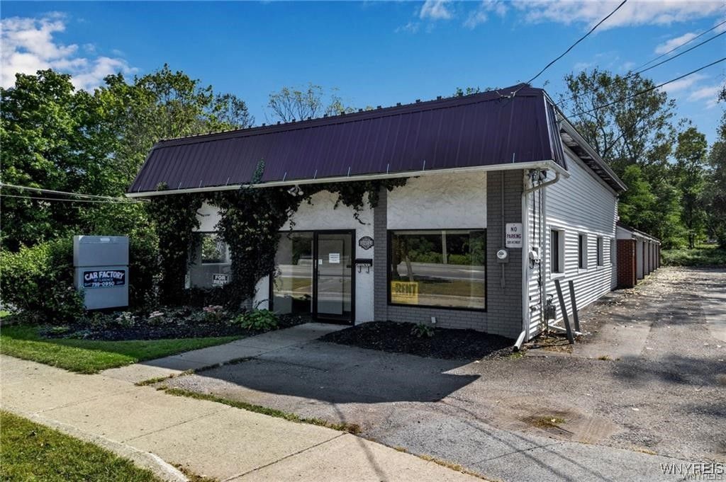 Prime commercial rental opportunity on Main Street in Clarence Hollow, offering excellent visibility, easy access, and a strong professional presence. Unit 1 features over 600 sq ft of flexible space, ideal for office, professional services, studio, or small retail use. This unit includes a private entrance, private bathroom, and access to a shared kitchenette, providing convenience for daily operations. The building is commercially zoned and designed to support a variety of permitted business uses. Rent includes all utilities except cable and internet. The tenant is provided two dedicated off-street parking spaces, along with on-street parking available for clients and customers. All exterior maintenance is included, allowing for a low-maintenance leasing option. Additional property highlights include updated flooring, modern lighting, sewer connection, and a newer metal roof. Located in a well-established commercial corridor with consistent traffic and visibility. Tenant must provide proof of liability insurance.