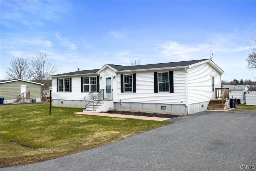 Beautiful doublewide home located in the desirable Camelot Village, offering a peaceful setting while remaining close to local amenities. This well-maintained home features 3 spacious bedrooms and 2 full bathrooms, along with an open-concept layout connecting the living room, Kitchen, and dining room - perfect for everyday living and entertaining. The spacious interior is finished in neutral tones, creating a warm and inviting atmosphere. The kitchen is fully equipped with an island, refrigerator, gas range/oven, dishwasher and microwave. Additional highlights include hot air gas heat, central air conditioning and 100-amp circuit breaker service. Enjoy outdoor living with a 10x10 deck and a concrete patio set on a generously sized lot. Lot rent is $635 per month and includes cold water, taxes and garbage service. Storage unit option is on a first come first serve basis directly with park at an additional fee. A low-maintenance home that truly must be seen to be appreciated!