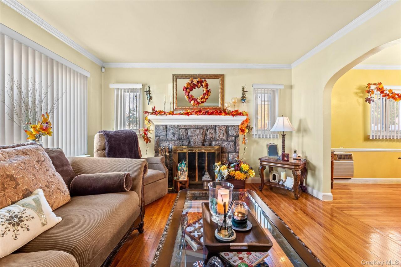 Classic detached Colonial on a convenient corner lot with genuine character and room to spread out. This spacious home offers 1,940 square feet with a legal extension. The first floor features a living room with a wood-burning fireplace, a formal dining room, and an eat-in island kitchen with stainless steel appliances and sliding doors to the backyard. Upstairs, 4 bedrooms and a full bathroom provide plenty of space, while the fully finished basement with a half-bath and mini split offers a flex room for an office or playroom. Hardwood floors and crown molding add warmth throughout, with gas heat for efficiency. Practical features include an attached one-car garage and a covered deck overlooking your private, fenced backyard on a 4,000-square-foot lot. The location delivers: walk to PS 129 Patricia Larkin and access MTA bus routes Q25, Q26, and Q76 locally, plus express routes QM1-QM44 to Midtown Manhattan. Flushing's diverse dining are minutes away. Solid and move-in ready.