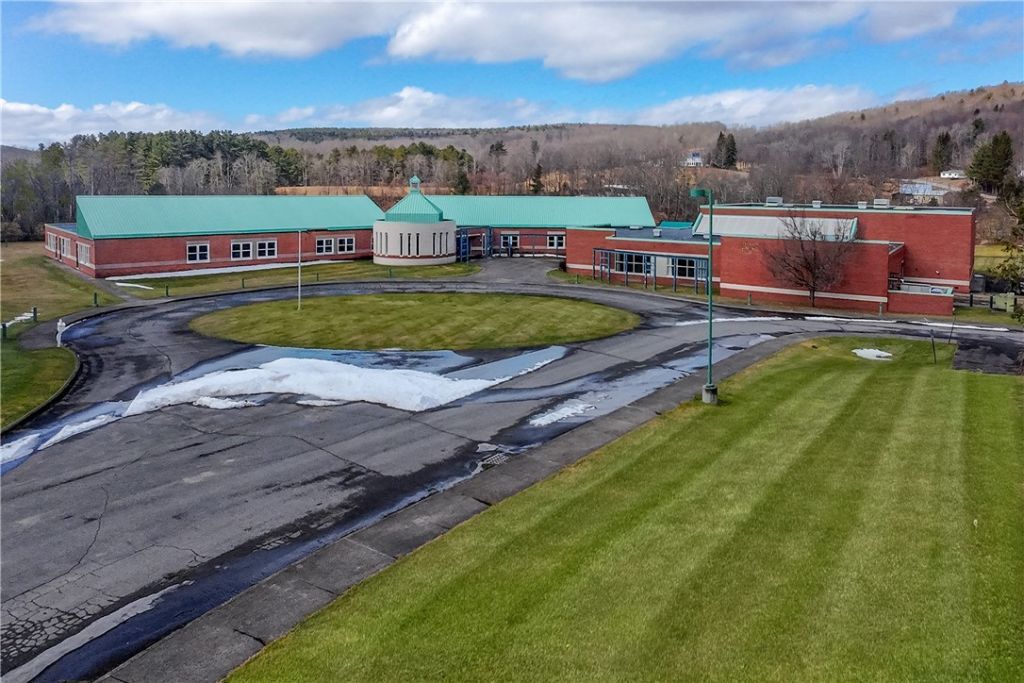 Commercial Lease Opportunity Single-Floor | Dual-Wing | Flexible Occupancy | Prospectus Available More than 36,500 sq. ft. of single-story, fully accessible commercial space for lease in the former Kellogg Elementary School in Treadwell, NY. Built in 1995 and well maintained, the concrete block building is minutes from I-88 and within convenient reach of New York City, offering strong regional access in the western Catskills. The quarter-round layout creates two distinct wings. The western wing offers 17+ rooms with restrooms, office space, and robust electrical capacity. The eastern wing includes a 3,000+ sq. ft. dining hall, commercial kitchen with exterior access, and a 6,500 sq. ft. hardwood gymnasium with full athletic amenities and truck access. Mechanical systems include fuel oil-fired boilers and a dedicated electrical service room. The site features a circular drive, ample parking for cars and trucks, and landscaped grounds. The property is well suited for education or training, healthcare and behavioral health, events and retreats, commercial food production, light manufacturing, professional offices/co-working, and nonprofit or government uses (subject to municipal approval). Ownership prefers a single tenant for the full footprint but is open to two or more independent lease spaces, with each wing able to operate separately.