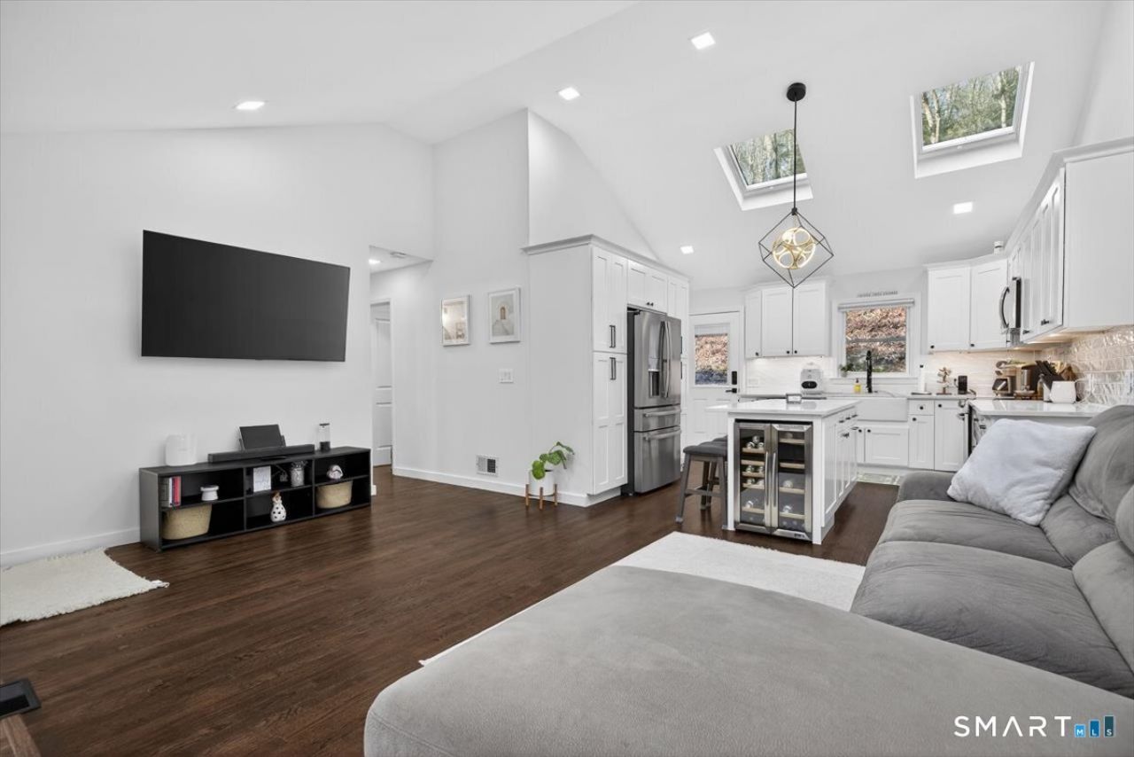 Water views in Seymour + fully updated and move-in ready! This meticulously maintained ranch features a bright kitchen with a new skylight, vaulted ceilings, and eat-in space. Flexible living room layout, 3 bedrooms with hardwood floors, and true one-level living. Spacious, super dry lower level offers great potential for additional living space. Major upgrades include a new roof (2023), newer windows (2020), central air, and a Sani-Dry sump system with battery backup and lifetime warranty. Enjoy a fully fenced yard, new paver patio, and private outdoor space-perfect for entertaining. Brand new driveway fits multiple vehicles. Located near trails, parks, and water access, with easy access to highways, shopping, and dining. Turn-key, clean, and ready to go. Easy to show-schedule today!