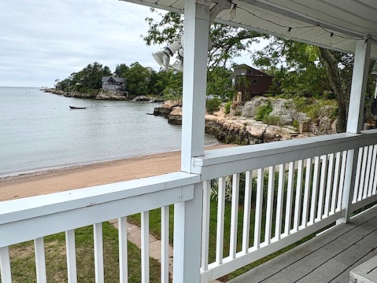 Quintessential, fully furnished summer home, directly on the Long Island Sound! Wonderful open floor plan with the living and dining room offering panoramic views of the the Long Island Sound. Fully equipped eat-in kitchen with a laundry room directly off of that. First floor bedroom and bathroom and 4 additional bedrooms upstairs with a large porch for enjoying the beautiful water views. There is an outdoor shower, which is nice to have after a day of swimming and spending time at the beach This home is perfect for entertaining weekend guests or just enjoying a quite and casual vacation type retreat. The sandy beaches are great for relaxing and watching the sail boats, kayakers and paddleboarders pass by. Plenty of off street parking and a garage. There is a small playground across the street and vast hiking trails, restaurants and the Yale Corinthian Yacht Club near by. Approximately 12 minutes to New Haven and Yale University and Yale Hospital.