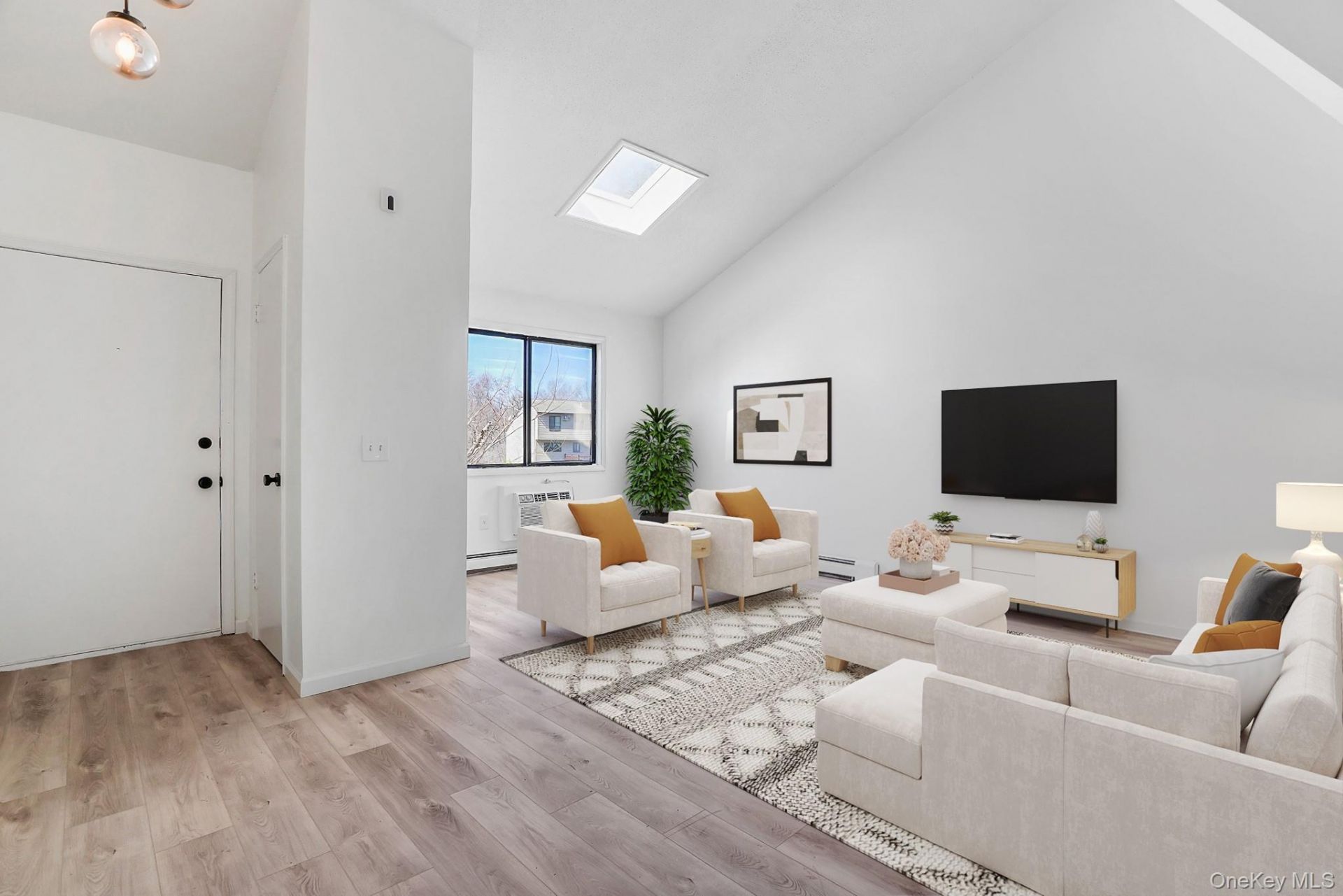 Completely renovated end-unit townhouse located on a quiet cul-de-sac in the sought-after Round Hill community in the Town of Fishkill. This beautifully updated home offers a bright, open-concept layout with a contemporary feel. The sun-filled living room featuring a vaulted ceiling and skylight, and the formal dining room features an interior balcony and sliding glass door that extends the entertaining space to a deck with views of the tree-lined backyard. The stylish kitchen includes new cabinetry, quartz countertops, breakfast nook, and stainless steel appliances. The home offers three bedrooms, including a primary suite with a walk-in closet, secondary bedroom with a walk-in-closet, and a well-positioned third bedroom on the kitchen and dining level, ideal for guests or a home office. This functional layout also includes a separate laundry room on the main level and an unfinished basement with under-slab plumbing for a future bathroom. Additional features include brand new luxury vinyl plank flooring, new window panes, updated lighting, door hardware, renovated bathrooms, and fresh paint throughout. The home also offers a one car garage, wall unit air conditioning, municipal water and sewer, natural gas heating and cooking, and a furnace that was replaced just three years ago. The community amenities include a pool, park, and playgrounds. Convenient southern Dutchess location, close to Main Street in Fishkill, shopping, restaurants, schools, I84, and only 6 miles to the Metro North Train Station.