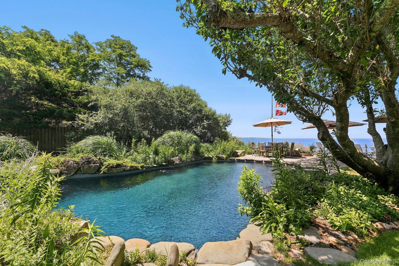 NEW TO MARKET. ENDLESS WATERFRONT VISTAS & ICONIC SUNSETS. Water views from almost every room! This sprawling home has it all. Open concept floor plan perfect for entertaining. Main floor features larger than life eat in kitchen, sun room, sunken living room, open concept living and dining, powder, laundry, extra large primary suite with walk in closet and XL en suite bathroom. 2nd floor features five bedrooms including a primary suite with private deck and four full baths. Lower level comprised of kitchenette, full bath, and walk out access to a heated gunite pool overlooking Peconic Bay. Additional features include a palatial, partially-covered deck with lounge and outdoor dining, massive backyard, and a private boat launch for kayaks, jet skis, and small watercraft. Minutes to Sag Harbor, Bridgehampton, and Water Mill.