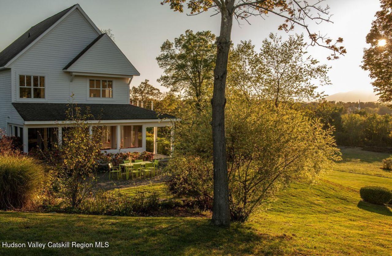 All of the charm of an old farmhouse with none of the headaches. This c2005 build has sweeping views of the Catskill Mountains and loads of charm. Down a long, tree lined driveway, youre just two minutes from the historic hamlet of Germantown but you feel like youre in a world of your own. Peaceful, private and quiet, 336 Main Street truly offers the best of both worlds. Rocking chairs line the porch to watch the show as the sun sets over the mountains, a fire pit sits in the yard and hammocks hang in the trees. The eight acres have been beautifully landscaped with low maintenance, perennial gardens, and the rolling green lawn brings your eye to the mountains. A bucolic view, the only building in sight is a church steeple in the distance. Inside, youll find high ceilings and walls of windows and glass doors to let the outside in-- the house was truly built to frame the view. The chefs kitchen is an absolute dream with a large island, a Sub Zero refrigerator, Viking gas range, two sinks and two dishwashers. A screened in porch runs the length of the house, perfect for entertaining, while there are quiet sitting rooms and an office tucked off to the side with dreamy views of the landscape and mountains. Upstairs there are three bedrooms, all ensuite. The primary has a private balcony & a large bathroom with a double vanity, a soaking tub and a large walk-in shower. The third floor has been built out with bunk beds, perfect for overflow or a place to park the kids. 336 Main is the ultimate in country living-- it leaves no stone unturned with its modern conveniences, old world charm, and those quintessential Hudson Valley pastoral views. Just 10m to Hudson & Amtrak, 15m to Rhinebeck village and 2h north of NYC.