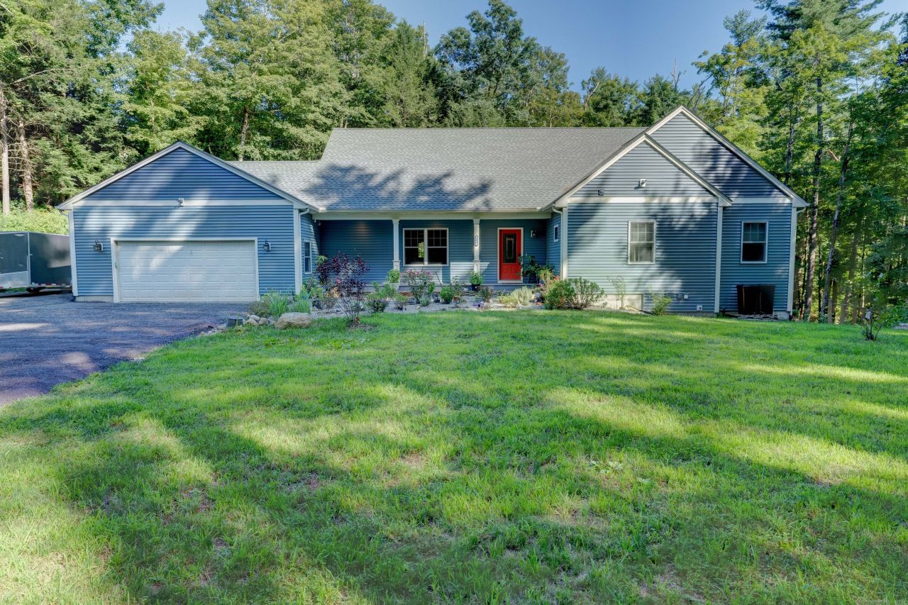 Come view this beautiful custom built 2100sf ranch on 2.15 acres of natively landscaped land bordered by Mansfield Hollow State Park lake and trails. This 2 year-old home features 3 bedrooms (plus 2 in ADU)and 2-1/2 baths (plus 1 full in ADU), and a large 2 car garage on the main level. The foyer leads onto beautiful oak flooring throughout the house. The living room has an 8'-8" tray ceiling and the dining room centered by a satellite-style 15 lamp brass chandelier. A chef's kitchen features a Forte gas range with six-burners, a center grill, and a large gas/convection oven, 10" deep double-basin farmer's sink, pull-down spring faucet with sprayer, wraparound counters and custom-built cabinets, quartz countertops and large breakfast island, decorative backsplash, stainless steel Samsung appliances, under-cabinet led lighting, and a large pantry. Laundry room and a 1/2 bath both have decorative tile flooring, quartz-topped cabinets and sinks. Included in the laundry room is a deep sink with pull-down faucet and sprayer, a state-of-the-art stacked LG washer/dryer, The Jack and Jill 1/2 bath leads into the guest room/office. A 3rd bedroom and a Full bath with a step-in shower with built-in seat, and a large linen closet.The extra-large master suite features a private linen closet, and a wall of French doors and windows leading onto the deck.The primary bath features a two-person soaking tub, step-in shower, waterfall fixtures, and wide quartz countered cabinet