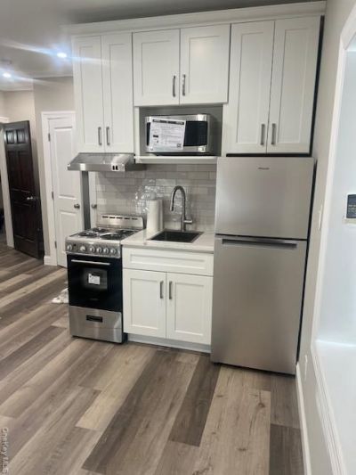 Studio unit on first floor of building furnished...Everything is brand new with ceramic floors, brand new bathroom. Plenty of light. Near transportation, shopping and the FIeld of Dreams Park There are 2 apartments. Handicapped accessible ramp and off street parking for one car per apartment in the attached lot. designed for individual living