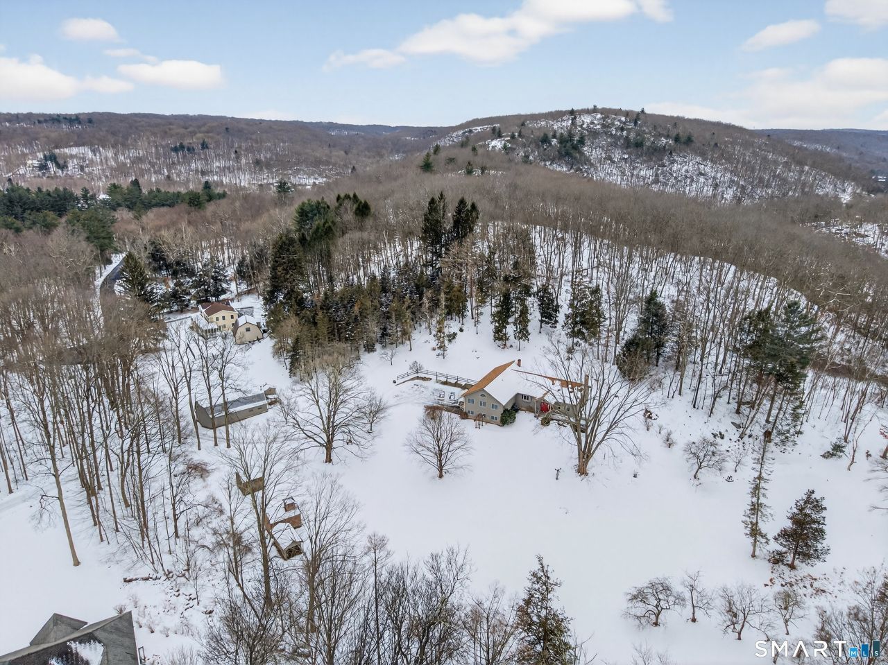 An incredible and rare opportunity awaits with this custom built expanded ranch set on an extraordinary 28+ acre parcel, offering unmatched privacy, serenity, and timeless New England charm. This true country estate-which has been used as a multigenerational farm property-features 2 gorgeous spring fed ponds and offers exceptional potential for equestrian use or future subdivision. Thoughtfully sited, the home overlooks bucolic rolling grounds, shimmering ponds, and a picturesque hillside. Inside, an inviting open floor plan centers around a stunning family room/great room, with a Buck wood stove, where French doors lead to a deck showcasing panoramic views of the idyllic landscape. Built by its original owner with only the highest quality materials, the home also features; a wonderful eat-in kitchen open to an expansive dining room; 3 generous sized bedrooms with abundant closet space; 2 full baths; an oversized 3 car garage, multi-zone heat and central air-conditioning. There's a partially finished lower level w/half bath, perfect as a workshop or easily converted into additional living space. The site is further enhanced by a barn & multiple sheds, creating a nature lover's retreat surrounded by peaceful scenery. The barn has potential to be converted to a stable or offers space for equipment, animals or storage. Conveniently close to major highways, Yale, downtown New Haven and shopping. Located in an award winning school district, making it a truly exceptional offering!!