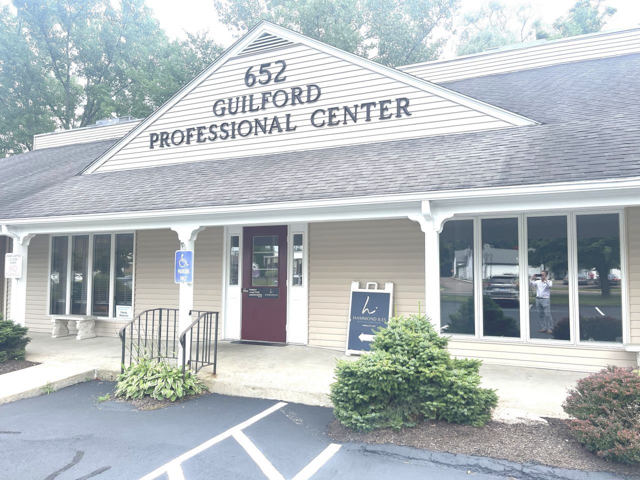 We are pleased to present this 1,614+/-SF Professional Office Condominium available for sale. Unit 3 is an in-line unit of this 4-unit commercial condominium, single-story building aka "652 Boston Post Road". The current floor plan includes Reception/Waiting area, 3 Business Office, 1 Bathroom, Break Area, IT / Storage Room, and Large open Training Room / Conference Room / Gym area. Unit 3 shares equally in the Condo expenses at a 1/4 allocation. Separately metered Utilities (Water, Gas, Electric). With direct access to Route 1, this "Guilford Professional Center" office building has great visibility and ease of access, and is located just west of Goose Ln, Exit 59 office I-95. Co-tenants are Yale Northeast Medical Group Family Medicine and a new dental specialty practice. This commercial condo affords both owner-users or investors the opportunity to own an accessible, well managed property that is ideal for Professional Office, Medical, and Wellness/Therapy uses.