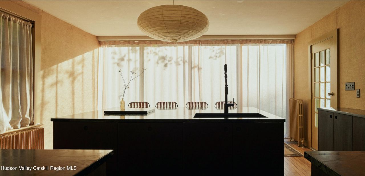 Perfectly sited on an historic River Road skirting the Hudson, the c.1820 Garrett Sickles House was expertly treated to a four-year restoration completed in 2023. This well-proportioned center hall was reimagined in collaboration with famed interior designer Nick Spain, and the house has been impeccably renovated from stem to stern: boasting of timeless finishes, modern conveniences and a touch of Brutalism in its cast. Featured in the likes of Wallpaper* and Upstate House, this property drips with timeless cool: original details are found throughout, from lavishly wide floorboards and chestnut ceiling beams to original moldings and an early American fireplace. The first floor presents a newly-designed kitchen featuring a massive green soapstone island and striking floor-to-ceiling & wall-to-wall windows - creating a bucolic diorama with its natural setting of fields and trees. A professional grade French door refrigerator and separate butlers pantry, Bosch dishwasher and oversized Verona stove make cooking and hosting next level. The dining room features a new wood-burning stove, foot-wide floorboards, beautiful wall coverings and dramatic lighting. The golden and earthy tones continue to the living room, where symmetrical design makes the working fireplace the focus and six-over-six windows allow the western sunset to bathe the space in natural light. Off the living room, the first floor bath nods to modernism with a custom concrete sink, green concrete-skimmed walls and imported handmade plumbing mixing with the original restored clawfoot tub. An adjacent home office sits on the southeast corner of the home with windows on both sides, making it the perfect place to focus and find inspiration. Upstairs, the color palette lightens. A guest bedroom with its own private staircase has two built-in beds, allowing guests autonomy and seclusion. The primary oversized bedroom holds large windows on three sides. Cross breezes keep the space cool in the summer, and the internal chimney warms the home on winter nights. A second bedroom adjoins the main bedroom, as does a custom bathroom featuring Waterworks fixtures, a deep soaking tub, a double sink and floor to ceiling handmade Spanish tiles. Outside, the original cedar facade of the home was hand restored and finished. An inviting porch on the front of the house and a larger one on the back makes for the perfect setting to read a great book or share in conversation with friends. The Garrett Sickles House is a true, move in-ready oasis featuring new household elements: two newly rebuilt & refined chimneys, roof, 1500 g concrete septic tank, leech field, plumbing, oil tank, 400amp electric system (ready for your EV), appliances, Generac backup power system, and custom Marvin Signature Ultimate windows. And the Stuyvesant location is equidistant from the center of bustling Hudson and charismatic Kinderhook. There is never a loss of things to do at the Garrett Sickles house. Warren Street in Hudson is a short drive and features a number of highly-regarded restaurants, art galleries and clothing stores. Bartlett house, Coopers Daughter, Art Omi, Kinderhook Farms, The Jack Shainman School, Klocke Estate and dozens of other attractions are all within the immediate area, ensuring that weekend getaways are always entertaining. The home is also available fully and partially furnished - pricing option available
