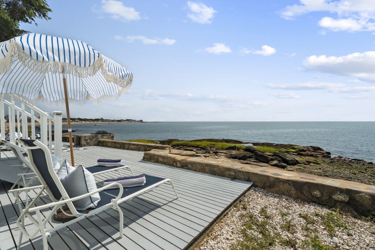 The most magical Morgan Point DIRECT WATERFRONT home. This exquisite residence boasts 4-5 bedrooms and 3 full baths, offering a perfect blend of comfort and luxury. The entire home has been fully renovated inside-out & top to bottom with replacement windows, new Hardie board siding, a new roof, Wi-Fi lighting, nest thermostats & more ensuring both beauty and durability. Inside you will find a BRAND NEW fabulous kitchen featuring a colossal island that seats 6, complemented by gorgeous quartz countertops. Fully applianced even has a wine refrig. The wide open great room, anchored by a wood fireplace & a wall of built-ins, provides an inviting space for gatherings. Pristine white-wash wood floors that echo the serene coastal setting. The open floor plan leads to the dramatic dining room with three walls of windows including a massive picture window framing breathtaking views of Long Island Sound, creating an unparalleled backdrop. The main floor also includes a bedroom & a new full bath. Upstairs, you'll find 4 additional bedrooms, a new hall bath and the breathtaking primary suite. This luxurious retreat offers panoramic, unobstructed 180-degree water views, a spacious walk-in closet & stunning full bath. Gas heat & central air. Outside the expansive multi-level deck presents sweeping views of the water, perfect for unwinding while listening to the gentle sounds of the waves. Firepit & outside shower. Direct access to the water & beach.