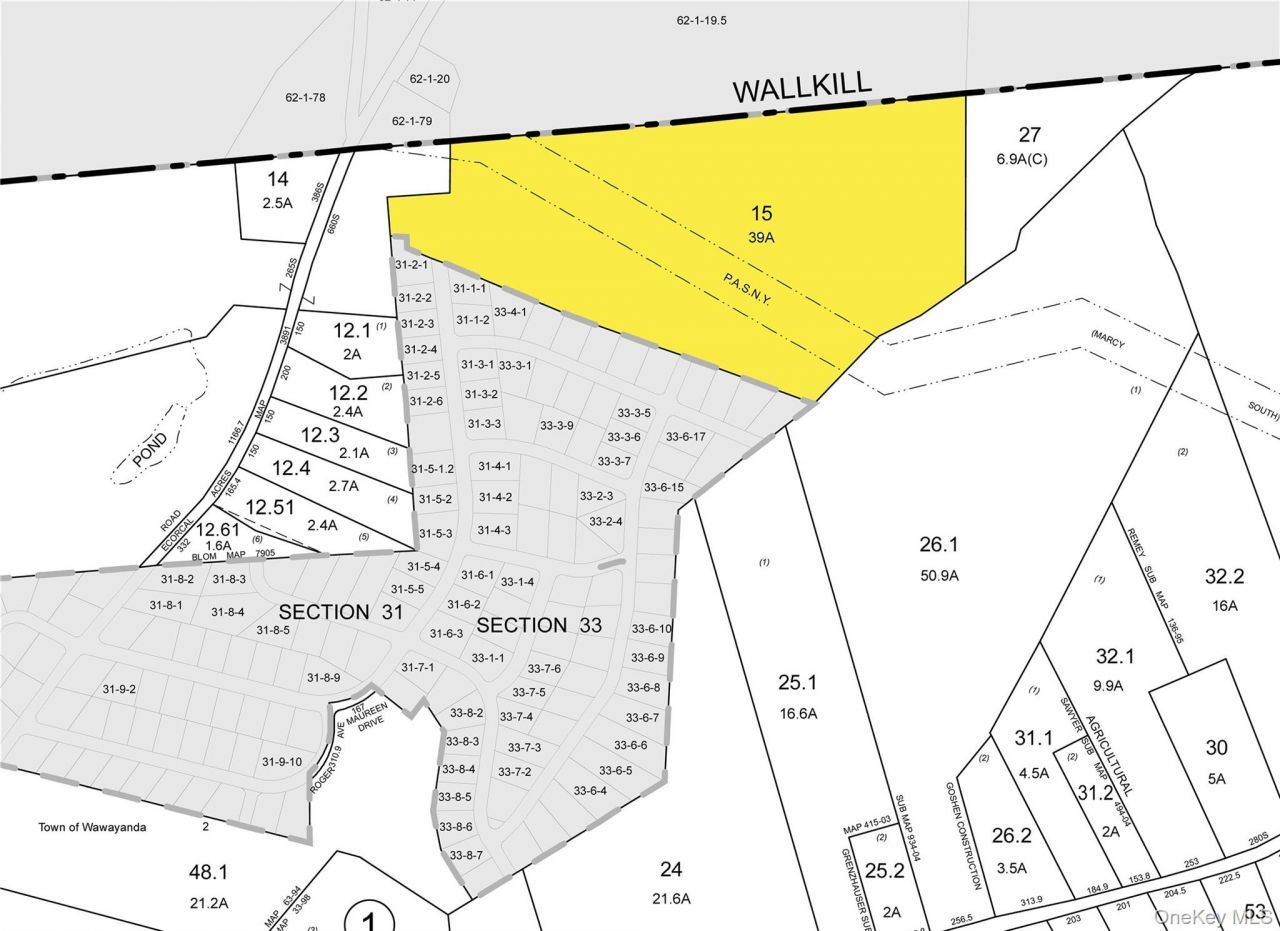 Large, rolling property which is predominately wooded. There is no formal road frontage, but in the adjoining Robin Meadows subdivision property abuts 2 points of access: 1 at the end of Maureen Drive and the other at the end of Rebecca Drive. Property is not engineered. Marcy South runs through the property. The power company maintains the land underneath the power line, making this a great hunting property, which is what the current owner uses it for. Great parcel for a private homesite or a potential small subdivision.