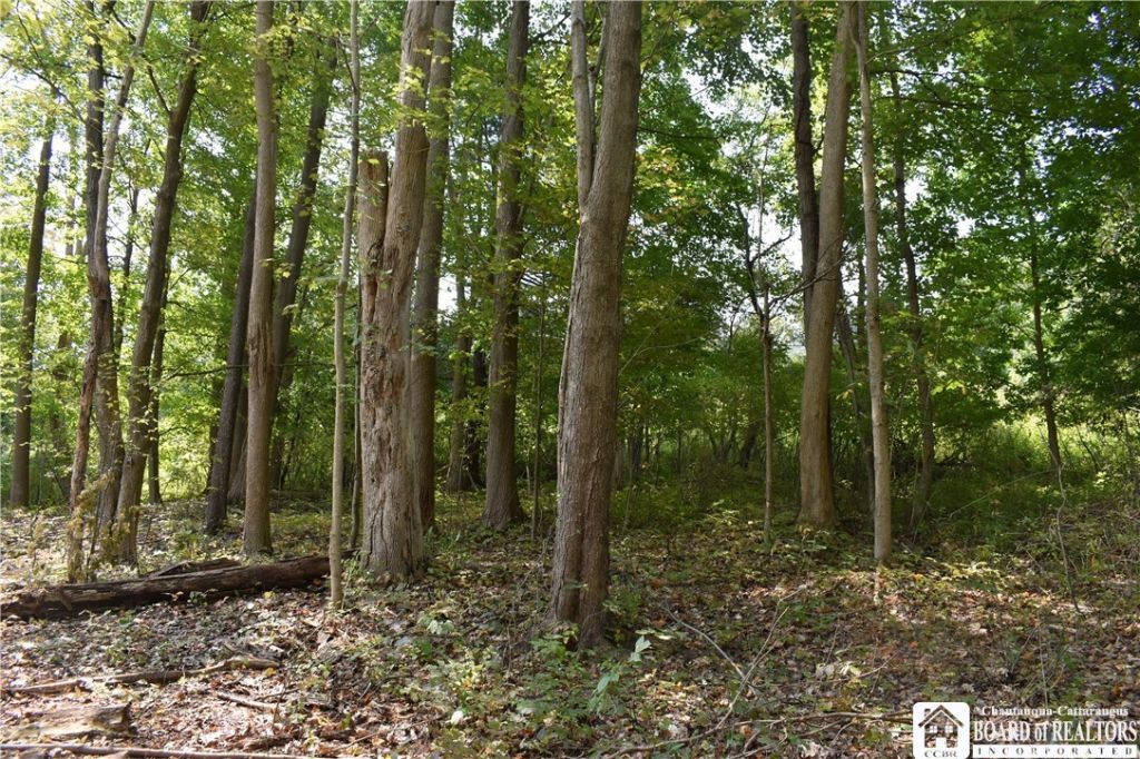 The property is completely wooded with a nice mix of hard maple, soft maple, black cherry, red oak, hickory, tulip poplar, beech and more. There was a recent timber harvest here and there is still nice timber remaining, including lots of big red oak to help provide feed for deer and turkey! The logging trails created have all been bulldozed into shape making it ideal for hunting, hiking and ATV use. The deer are already using the trails, evidenced by their prints in the trail system. The log landing area can make a good area for building a camp or pulling in a camper. With a little more clearing you can make a really nice setting above the road with view if you cut some additional trees. Directly across the road is County owned (public) land with a lean-to by Cassadaga Creek. Cassadaga Creek is an excellent fishing stream and is part of the Cassadaga-Conewango Canoe Trip Trail. This is a nice stream to canoe or kayak on, sometimes with some extra portaging necessary. With County land across the road you will not have anyone building across from you here! All oil, gas, mineral and timber rights transfer.